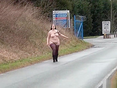 Corpulent non-professional flasher Emmas public exhibitionism of voyeur big beautiful woman