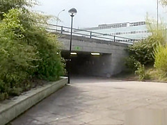 Hotty with plug in the a-hole positions for a lad at a public beach