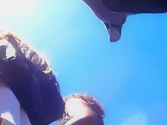 Hotty with plug in the a-hole positions for a lad at a public beach