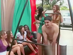 CFNM gals playing around with studs in a swing