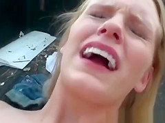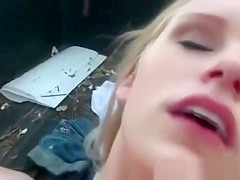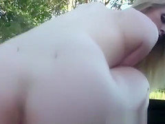Lustful blond drilled on back outdoors