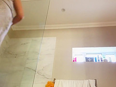 Hawt unshaved brunette hair wife in nature's garb showering on hidden webcam