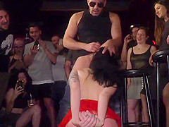 Dark Brown arse caned and spanked in public