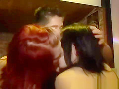 Party cuties giving a kiss groping and engulfing