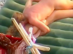 Hotty with plug in the a-hole positions for a lad at a public beach