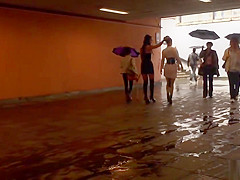 Breasty villein wazoo caned in the rain