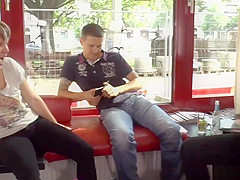 Small dark brown gangbanged in crowded bar
