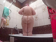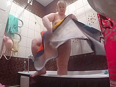Lesbo has installed a hidden camera in the bath at his girlfriend. Peeping behind a big beautiful woman with a large booty in the shower. Voyeur.