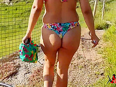 HOTTY ON VACATIONS LOVE TO TEASE HER BF SHOWING OFF HER LARGE BAWDY CLEFT IN HER FRESH BIKINI