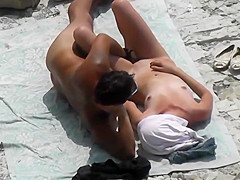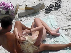 Skinny golden-haired acquires drilled with her boyfriend at a public beach