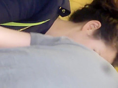 Steamy public meeting with amorous Oriental slag being recorded with camera
