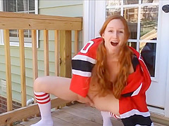 F55 nasty redhead masturbates outside