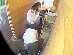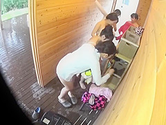 Steamy public meeting with amorous Oriental slag being recorded with camera