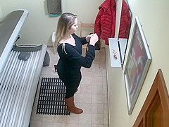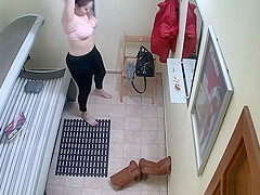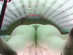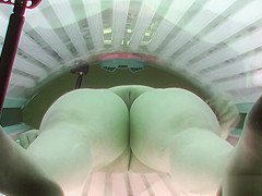 Breasty Fat Angel Relaxing in Solarium Tanning Ottoman