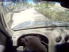 Sexy hitchhiker gets slammed about the roadside