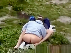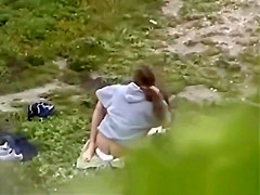 Hotty with plug in the a-hole positions for a lad at a public beach