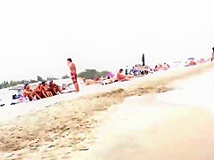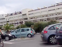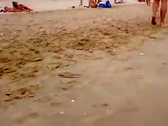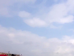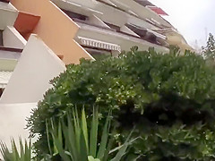 Hotty with plug in the a-hole positions for a lad at a public beach