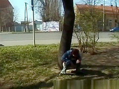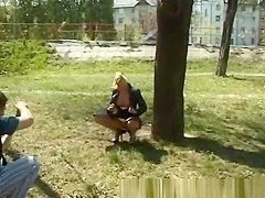 cute youthful hotties peeing in nature