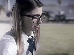 Nerdy school legal age teenager enjoyed fucking in her 1st double penetration sex