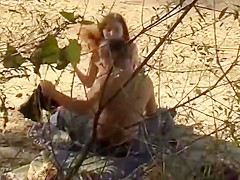 2 sexy girlfriends have sex outdoors