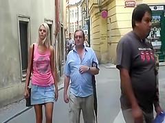 Sexy euro hottie bonks old stud in public
