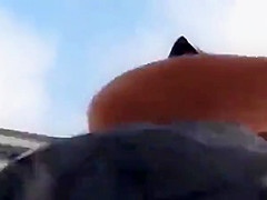 Hotty with plug in the a-hole positions for a lad at a public beach