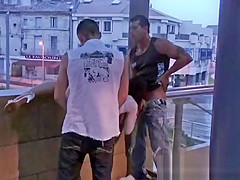 Male+Male+Female 3some in public