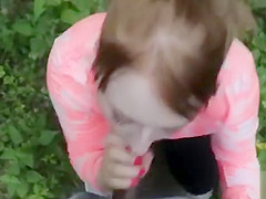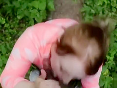 Breana in bitch gives face hole gagging bj in the outdoors