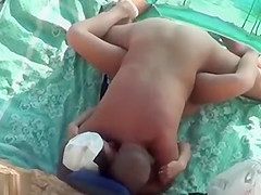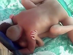 Outdoor voyeur with lascivious pair having sex on public beach