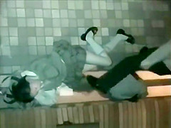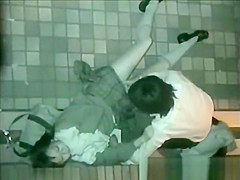 Lewd Japanese student pair fuck hard outside a building