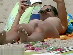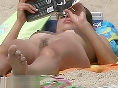 Hawt body chick lying down on the beach surprised by a spy webcam