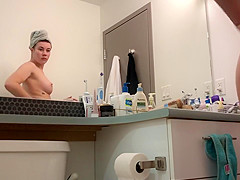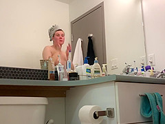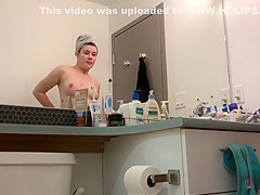 Hidden livecam - college athlete after shower with large booty and close up love tunnel!!