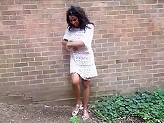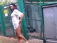 Hotty with plug in the a-hole positions for a lad at a public beach