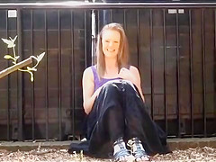 Breana in bitch gives face hole gagging bj in the outdoors