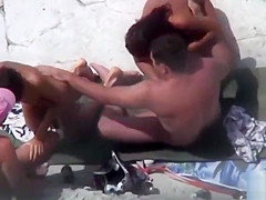 Public foursome at the undressed beach