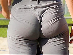 Hotty with plug in the a-hole positions for a lad at a public beach