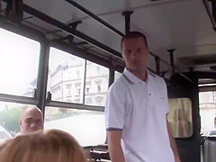 Euro bitch bonks massive pecker in public bus