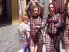 2 female slaves in femdom walked in public
