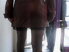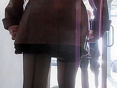Hot angel in seamed nylons going upstairs three