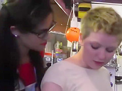 Cute Short-haired Lesbo Eats Her Girlfriend's Soaked Slit