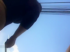 Hotty with plug in the a-hole positions for a lad at a public beach