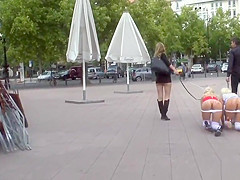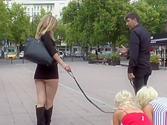 Breasty blondes pissing on the street