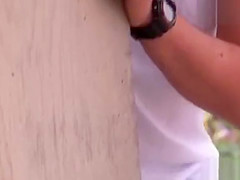 Breana in bitch gives face hole gagging bj in the ou...