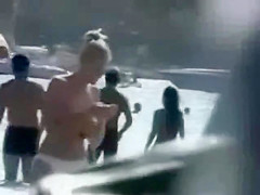 Voyeur films a natural large breasted nudist beach