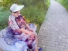 Breana in bitch gives face hole gagging bj in the outdoors
