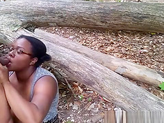 Breana in bitch gives face hole gagging bj in the outdoors