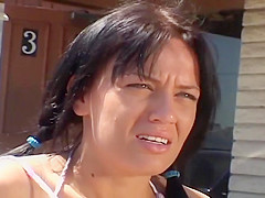 Breana in bitch gives face hole gagging bj in the ou...