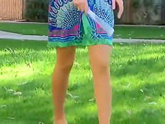 Hotty with plug in the a-hole positions for a lad at a public beach
