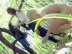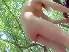 Hotty with plug in the a-hole positions for a lad at a public beach