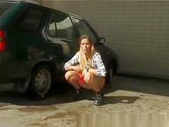 cute hotty peeing outdoor